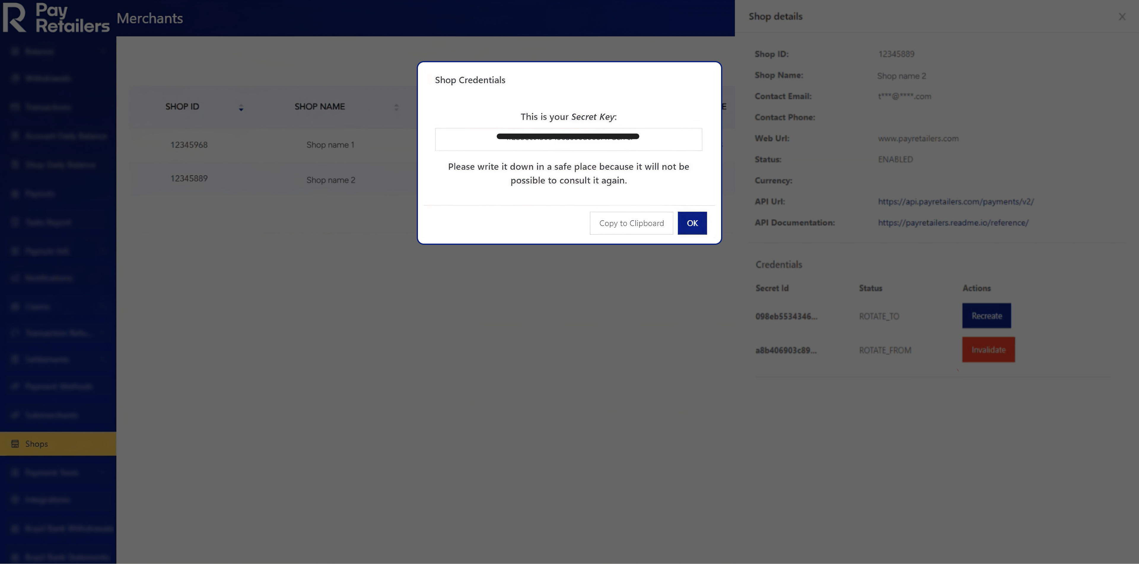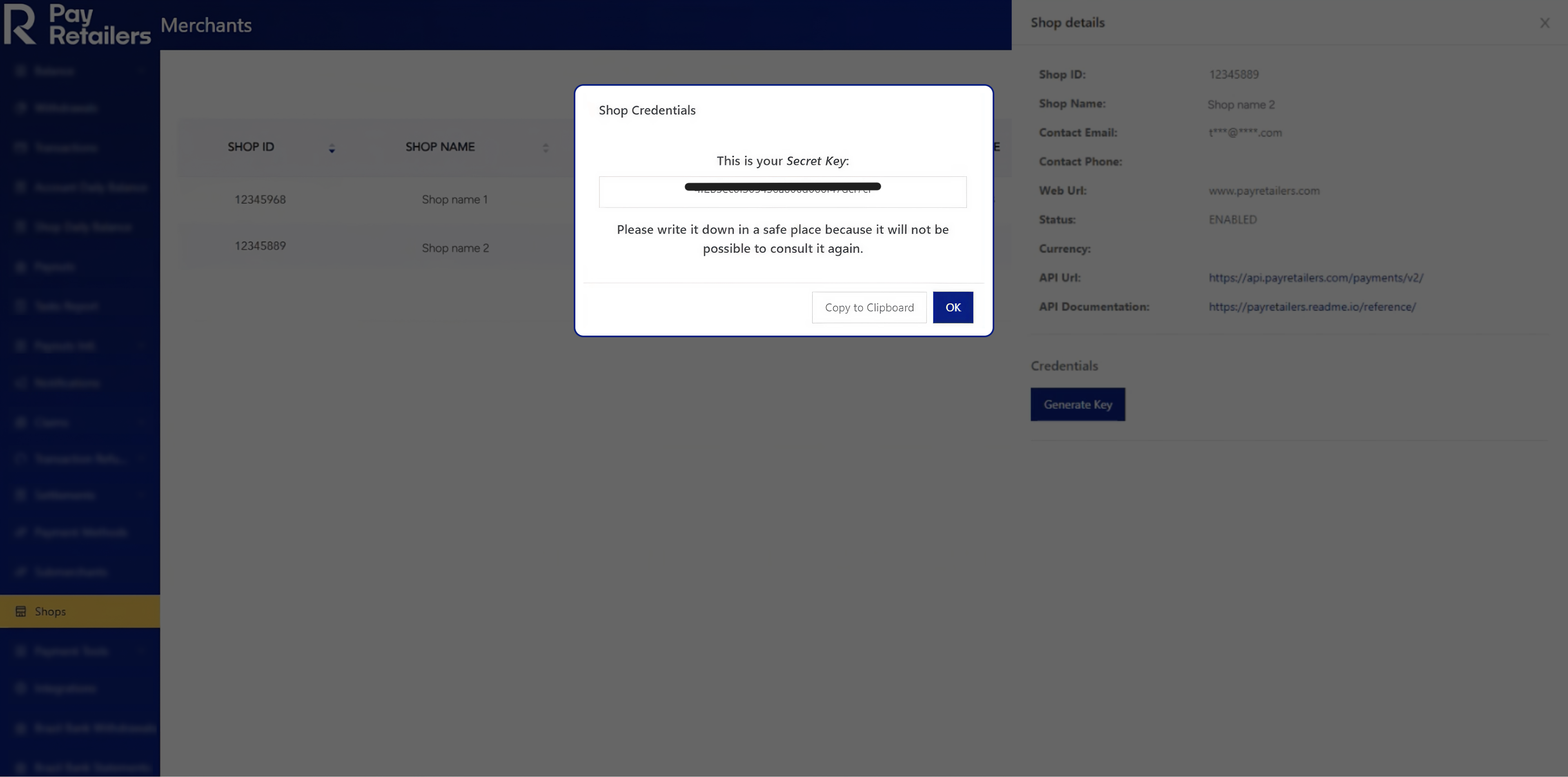 You can create your own API Secret key for your new Shop, or exchange it for a new one if it has becomed compromised. Here you will find a step by step guide on how to do it from your Shop Back Office.