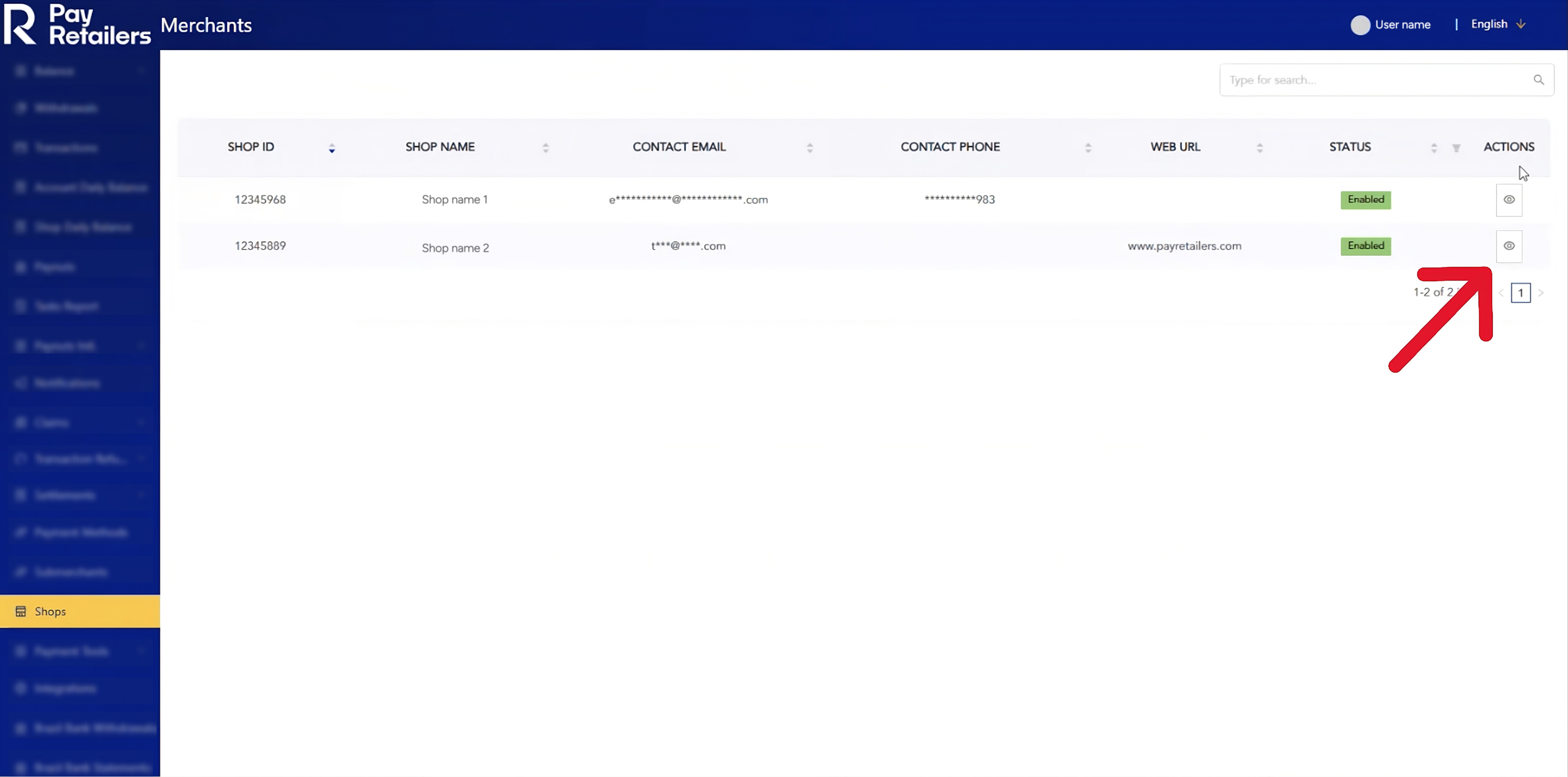 Navigate to the Shop menu and hit the view button in the ACTIONS column