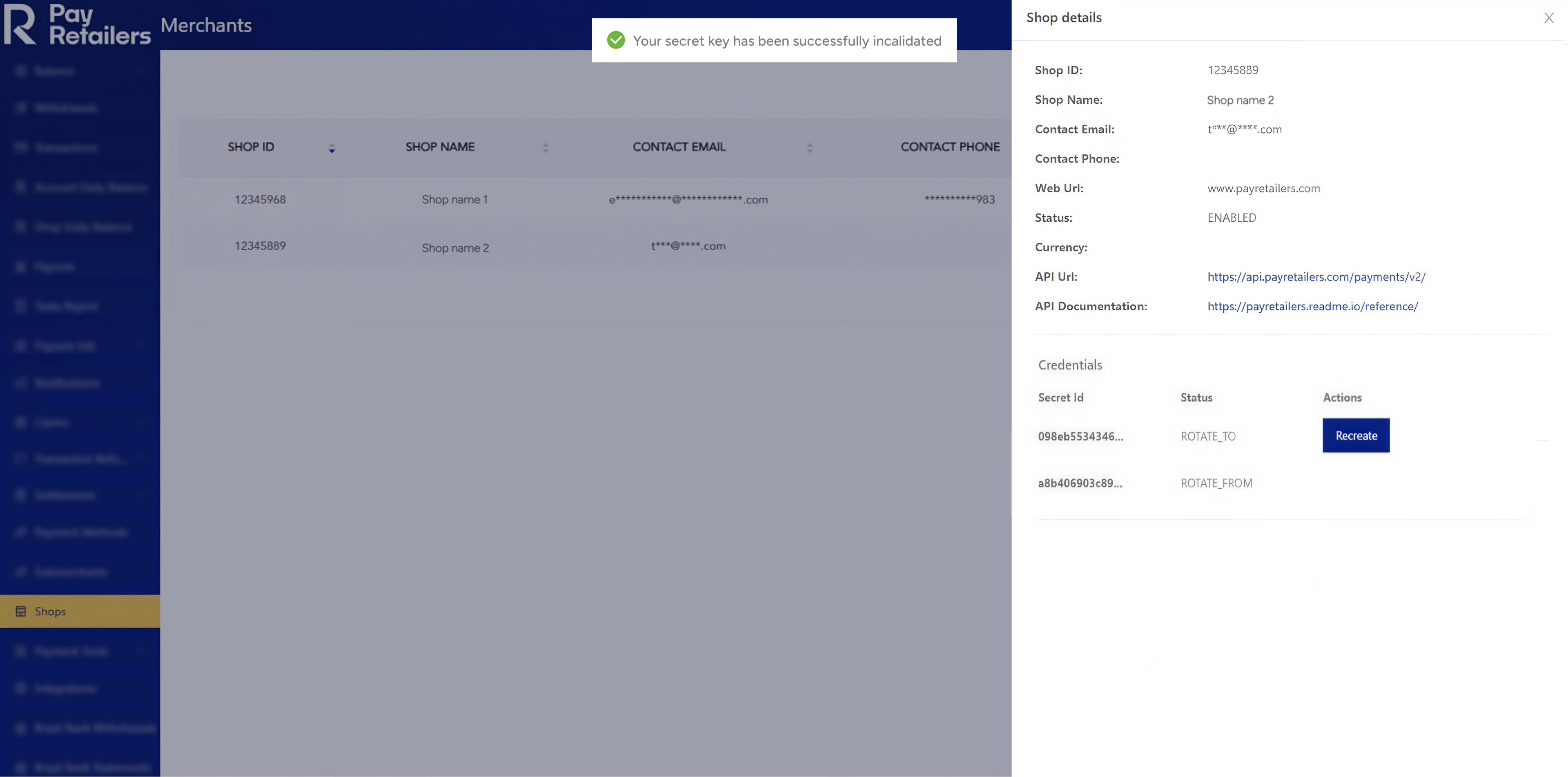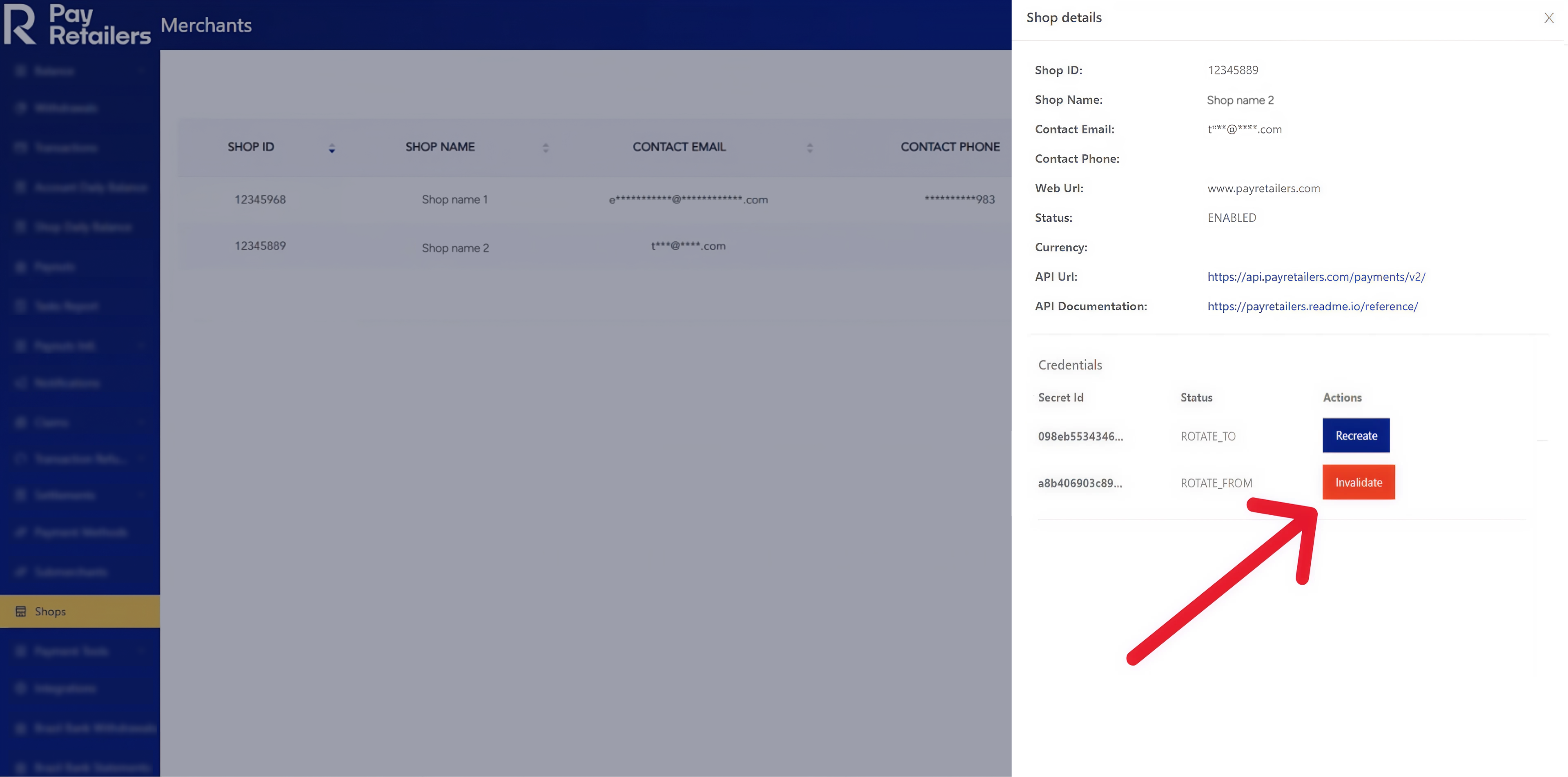 In case you have implemented BasicAuth for our webhook notifications, you will have to update the credentials there as well. Bear in mind that the webhooks will get to your system with the old credentials until you invalidate them. Only then will the webhooks start using the newly rotated credentials.