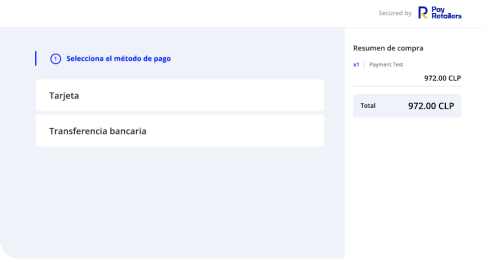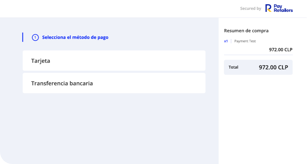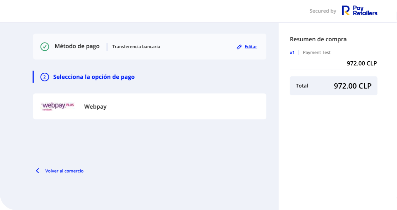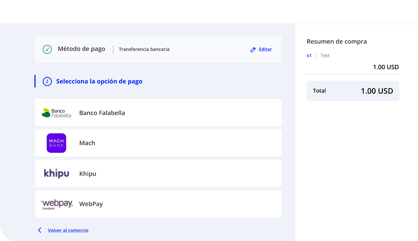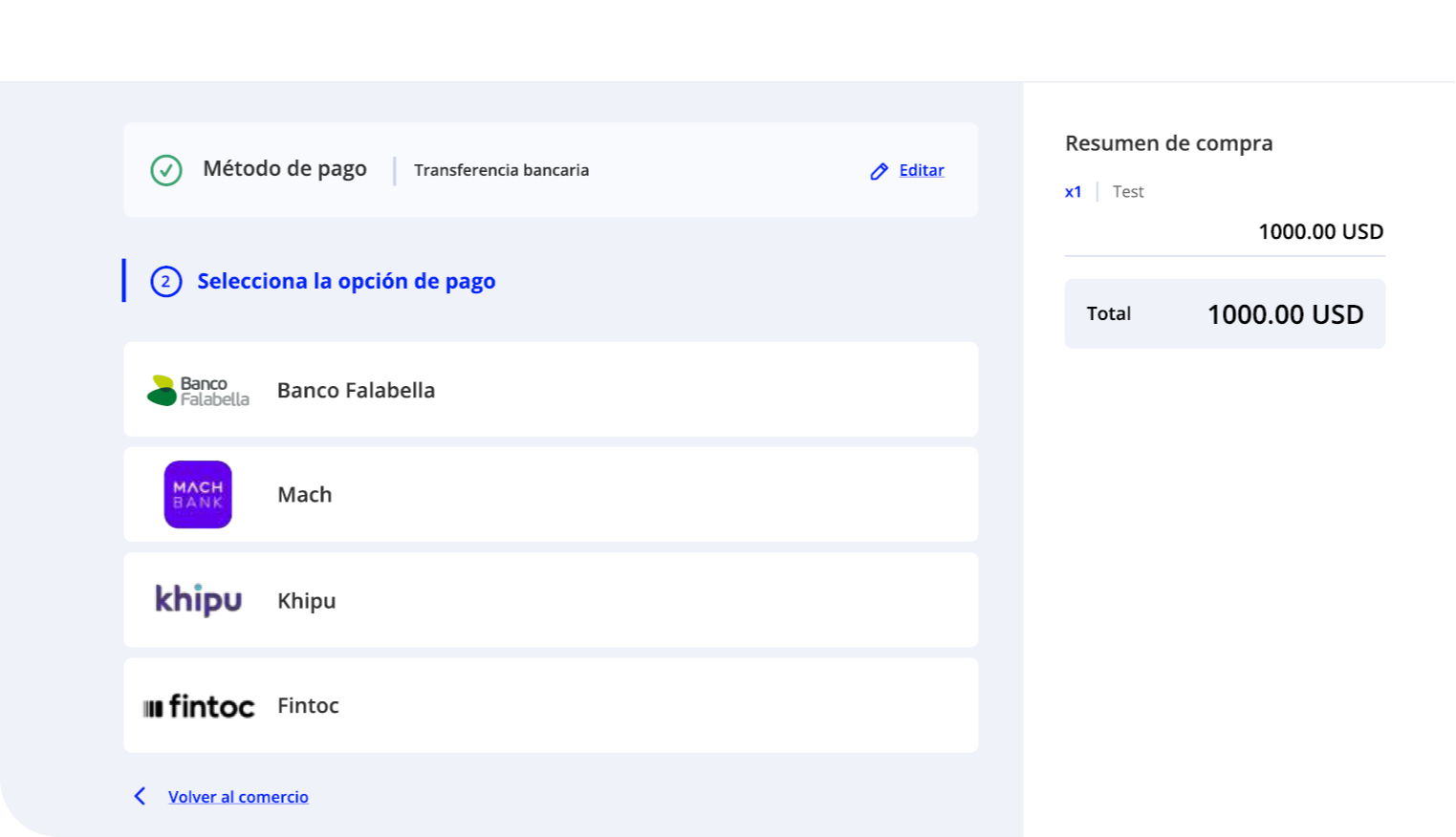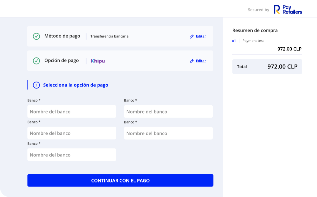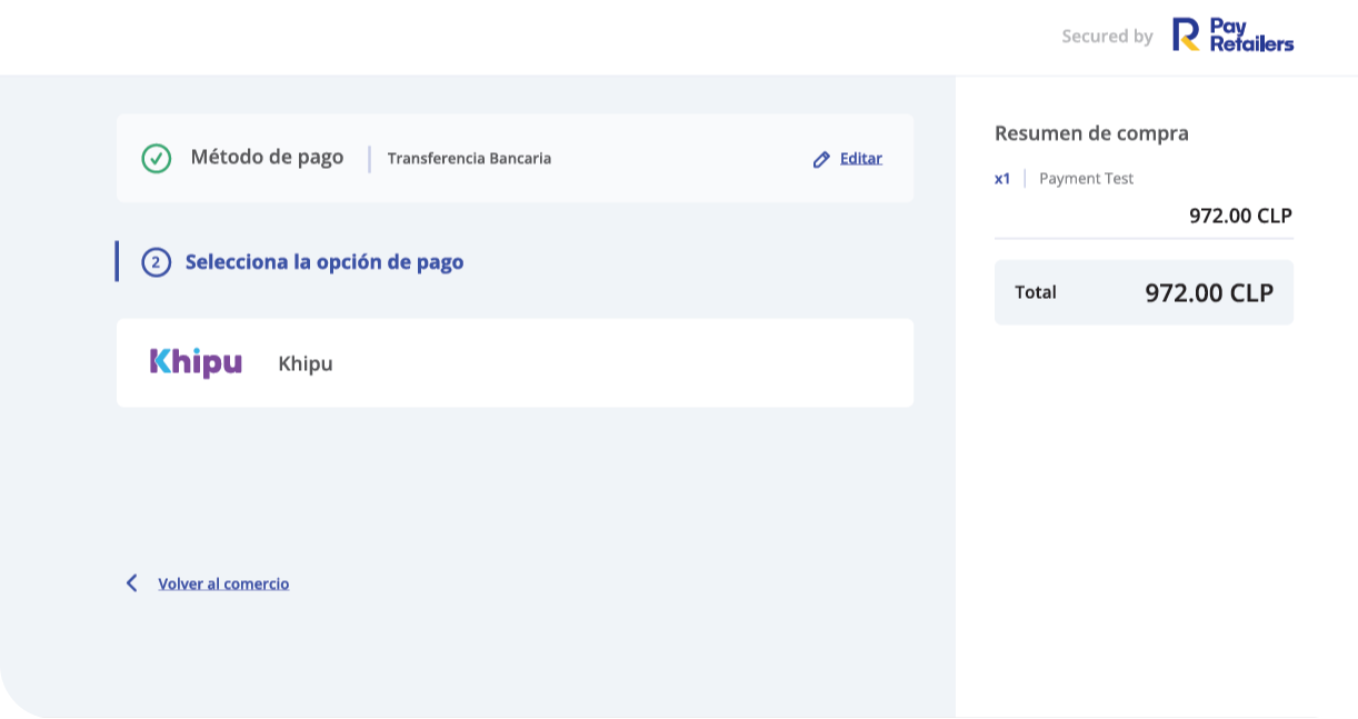 Choose "Transferencia bancaria" to proceed with Khipu.