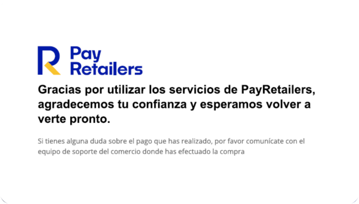 Receive payment confirmation from PayRetailers with complete transaction details.