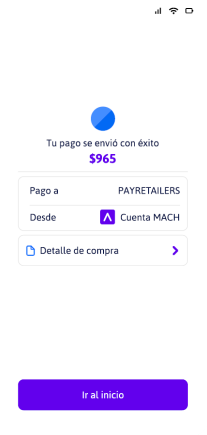 Confirmation message: ¡Pago completado! (Payment completed!)