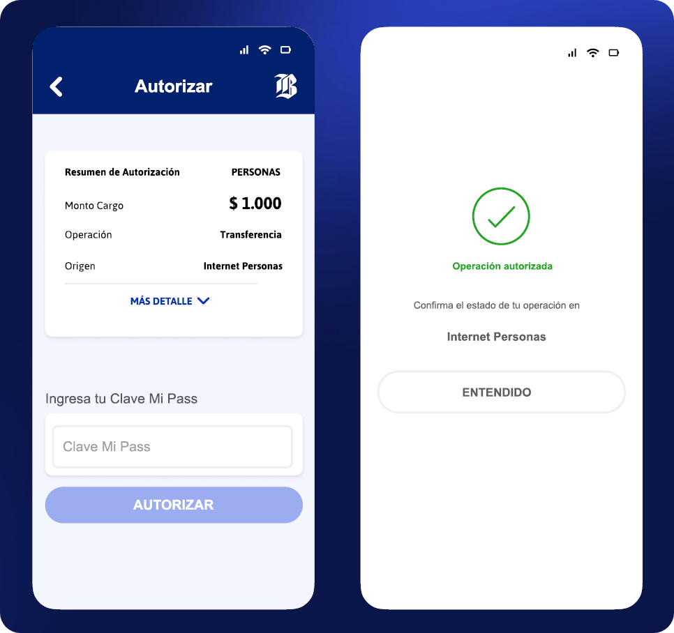 - Autoriza: Tu operación mediante tu celular de manera fácil, rápida y segura (Authorize your transaction via your cell phone in an easy, fast and secure way)