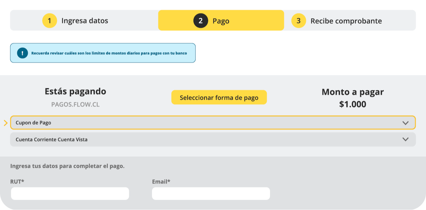 - Cupon de Pago (Payment Coupon) - for cash payments