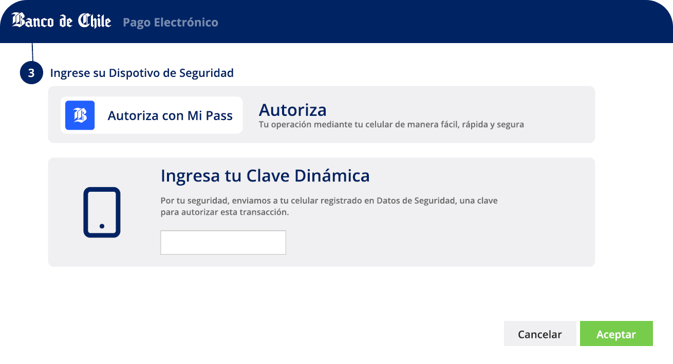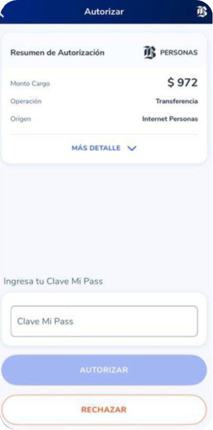 Enter your Clave Mi Pass (bank authorization password) to confirm: