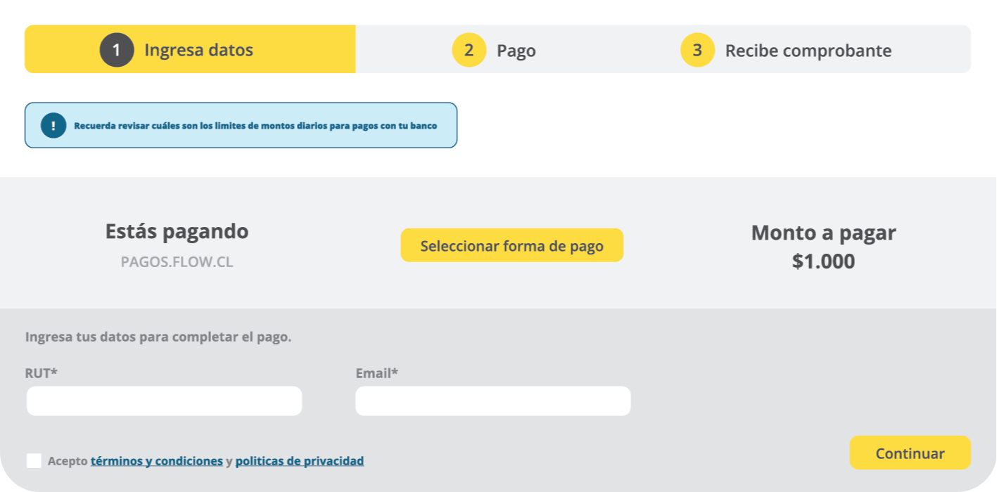 Note: Recuerda revisar cuáles son los limites de montos diarios para pagos con tu banco (Remember to check what the daily payment limits are with your bank)