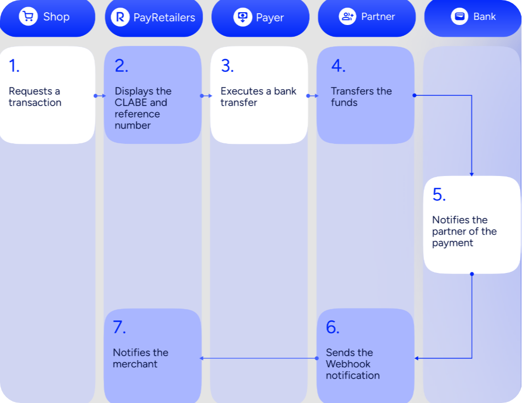 - Payer: Executes the payment using the CLABE account