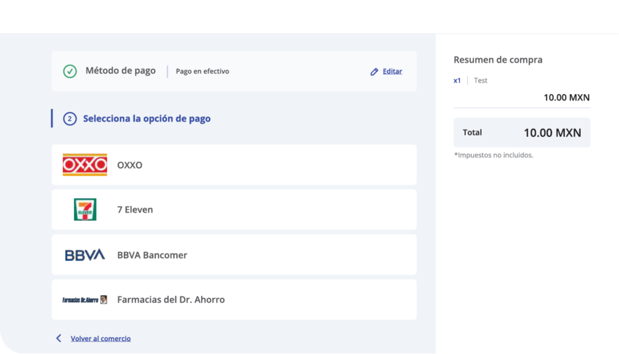 - Show OXXO logo and "Pay with Cash" messaging