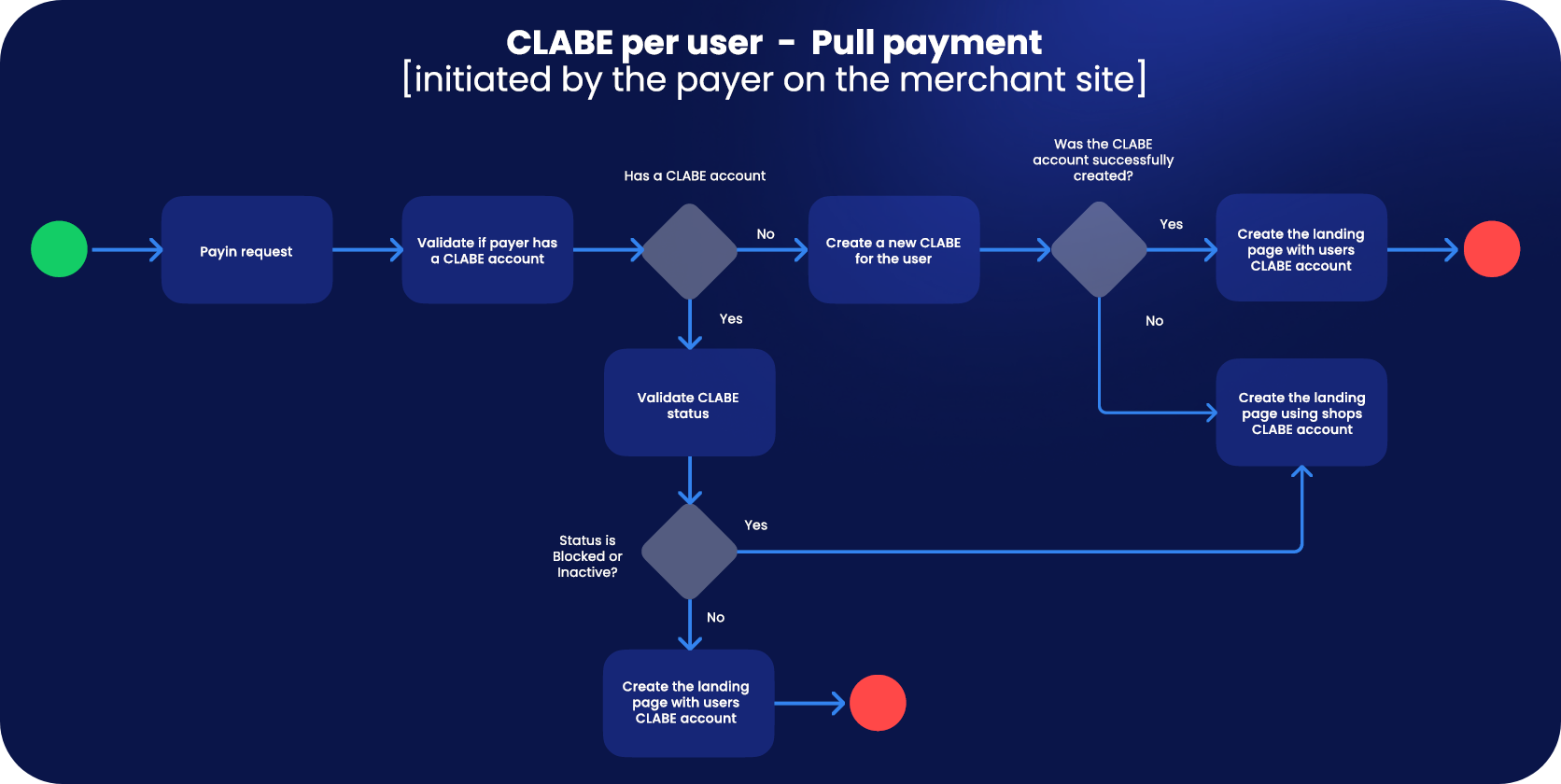 - If Yes: Create the landing page with user's CLABE account