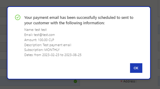 Subscription | Check this box if you want to send payment emails at fixed intervals. You will have to set it to monthly or weekly emails and chose the time range during which the emails will be sent. |