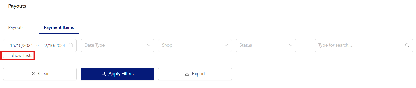 You can also show or hide your test payouts from your results by checking the "Show Tests" checkbox.